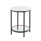 S robustnými oceľovými nohami, pevnou drevotrieskou, policou z vysokokvalitného tvrdeného skla a nastaviteľnými nožičkami poskytuje tento stolík stabilnú a spoľahlivú podporu (každá polica pojme až 10 kg) Majte svoj pohár, diaľkové ovládanie, mobilný telefón a časopisy po ruke vďaka dvom otvoreným policiam. Tento konferenčný stolík s rozmermi 45 x 55 cm (priemer x výška) ponúka dostatok úložného priestoru pre vaše veci.